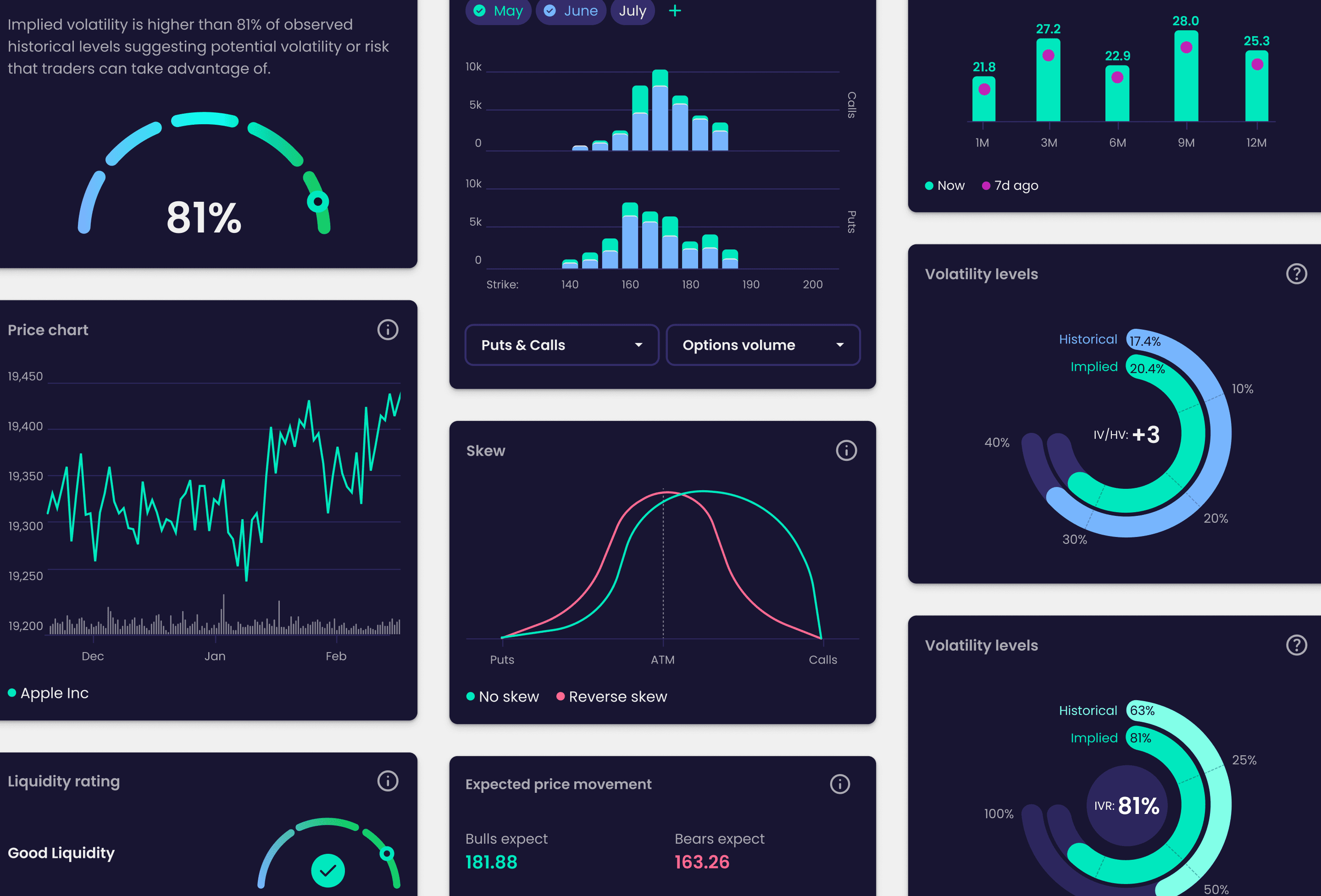 Translated complex volatility and options data into clear, modular visualizations to reduce cognitive load.